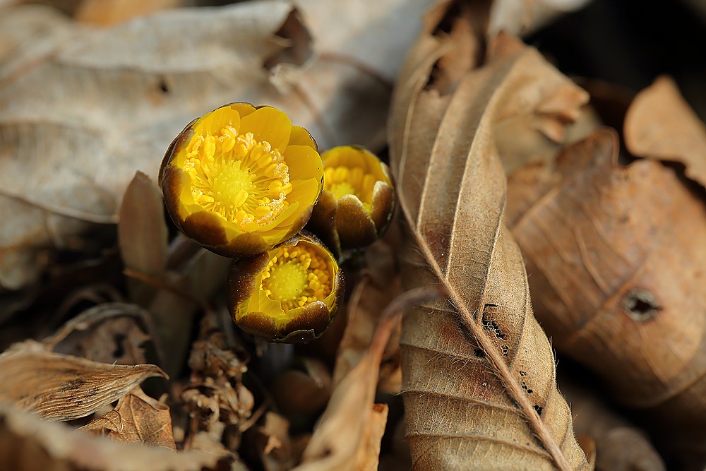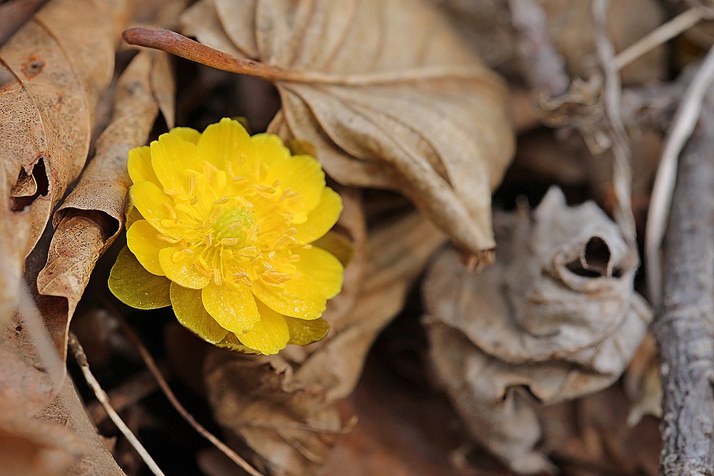 В окрестностях Владивостока на прогретых местах зацвели адонисы. Большая часть конечно еще прячется среди прошлогодней листвы, но самые смелые уже выглядывают из теплой подстилки.