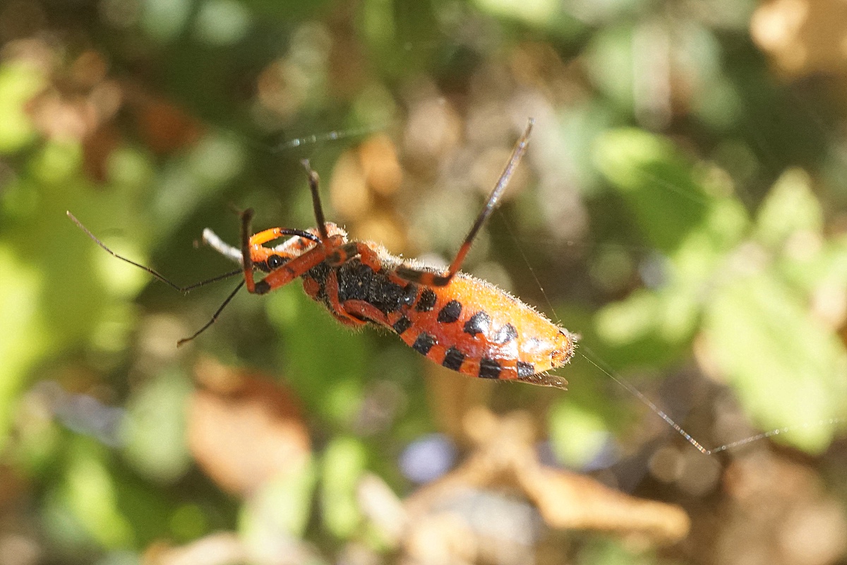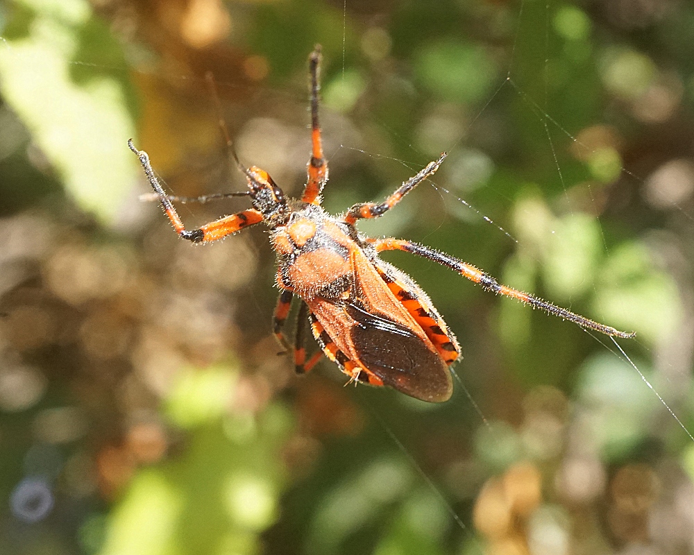 Стал снимать клопа-хищнеца. Вдруг он оказывается в сети - продолжаю снимать в надежде, что появится хозяин. Это длилось не больше минуты. Паук не появился , а клоп, расправив крылья, улетел.