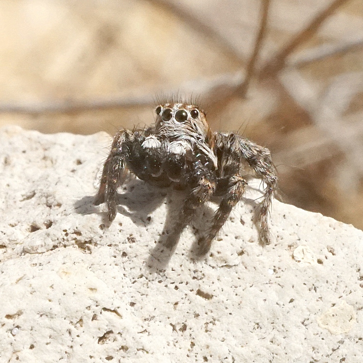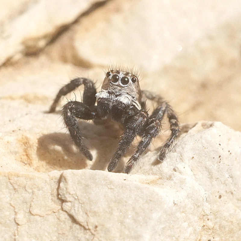 Наблюдаю постоянно охотящихся пауков-скакунчиков только этого вида. Снова они -самец, самочка и снова самец.