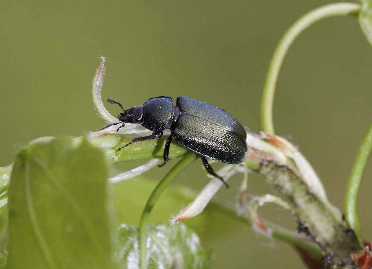 На веточке молодой осинки увидел бодро путешествующего почти чёрного жука. Сначала показалось, что это жужелица. Но нет, не похож он на жужелицу. Не сразу понял, к какой группе его отнести. Только позже, когда рассмотрел на фото понял, что это представитель сем. Рогачи (Lucanidae), скорее всего - Platycerus caraboides. Точно пусть определят специалисты.