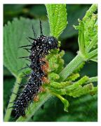 Такая милая бабочка, и такая страшненькая гусеница. Так и кажется всё съест на своём пути. В сезон бедная крапива от них к земле гнётся, так их бывает много.
