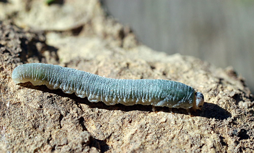 У "нормальных" гусениц (бабочек) по-многу очень маленьких глаз на каждой стороне головы, у этих же да, по одному.