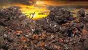 Спасибо. Это стеклянные шарики из водочных бутылок с дозатором. Лежат на черном куске кожи.)))