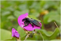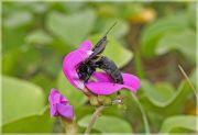 Дотягиваясь до нектара, пчела подставляет спину для горки пыльцы, которую понесет на следующий цветок