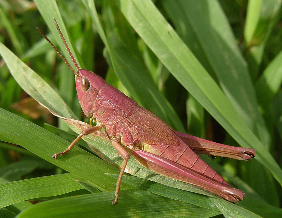 Зеленчук непарный (Chrysochraon dispar Germ.), отр. Прямокрылые (ORTHOPTERA), сем. Саранчовые (Acrididae). Вроде бы должен быть зеленым, судя по названию. Но с этим феноменом (иногда красные самки) мы, к счастью уже разобрались. К несчастью, многие наши коллеги по-прежнему называют саранчовых (короткие усики) кузнечиками (длинные усищи). Верю, что скоро и это усвоим.
