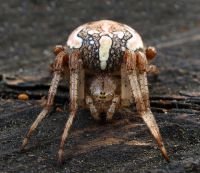 Жила на моей любимой полянке между даух веточек.И вот прихожу я однажды-нет моей Пуськи и паутинки тоже нет...Всё,думаю,склевали,заразы.Присел,пригорюнился и мрачно закурил.Было уже не до съёмки.Прошло недели три...Лазая по кустам,я почувствовал что на шею что-то шмякнулось.Пуська!Жива!Паутины вокруге не было!Посадил на бревно и снял.Здесь она,слегка,испугана и обижена.В жизни она душка.