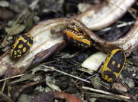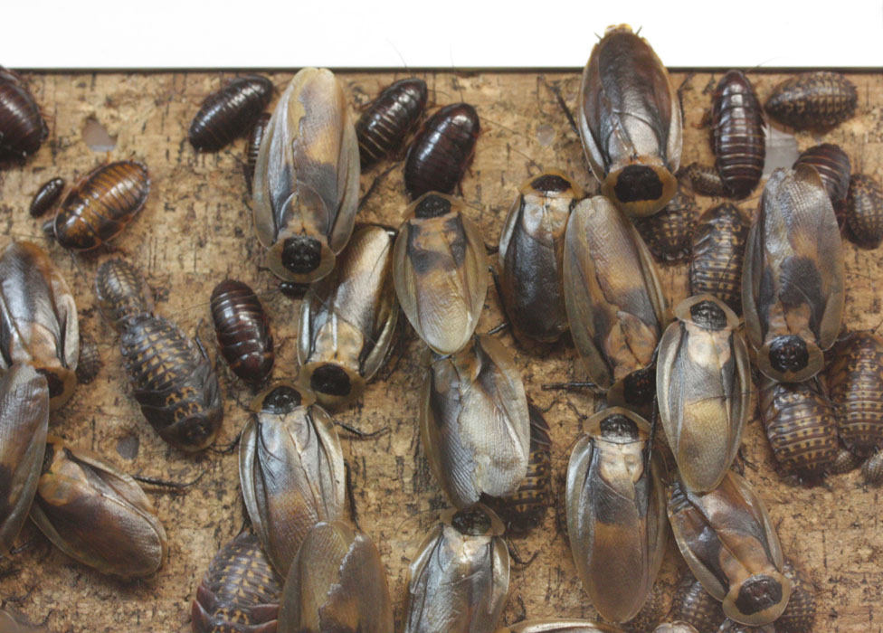 Долго маялся, как познакомить вас с другими макрообъектами и не совсем макро, Ярословского зоопарка (опять Limar разнесет по "закоулочкам" ) . Надеюсь, что и вам ( особенно деткам) это будет интересно. Слева направо (представьте,что Вы на экскурсии) мы видим следующих животных: 1. Таракан мадагаскарский (Gromphadorhina portentosa), бескрылый, с панцирем на спине. Живет, как и прочие тараканы, на земле, скрытно, кормится ночью. Пожалуй, самое интересное это то, что он лягается и шипит в момент опасности. Где живет, и так понятно. 2. Бронзовка африканская (Pachnoda trimoculata), такая же сластена, как и наша, обожает сок плодов, а личинка, естественно, развивается в гнилой древесине. Живет в траве и на кустарниках в Ц. и Вост. Африке (Судан, Чад, Заир). 3. Палочник, отр. Привидениевые (Phasmoptera).....не известно, откуда появился в зоопарке (нет и видового названия). Если говорят о фитомимикрии, то сразу вспоминают палочника (сучок, ветка, раскачивание в такт ветру, прикидывается мертвым). Загадка.....вот тут на снимке, сколько их, этих привидений? Ну, а по центру - большая самка и пристроившийся сзади самец. При желании, как и ящерицы, может и "копыта" отбросить. Обитают в Ю. В.Азии, Австралии, Сев. и Ю. Америке. 4. Чилийский розовый птицеед (Grammostola rosea) здесь почему-то посерел? Но все равно выглядит внушительно, хотя совсем и не двигается, климат не тот.....Лучше, когда тебе тут и леса, и прерии, и пампасы, и высокогорные пустыни (Чили, Боливия, Аргентина). Там он и охотится за крупными насекомыми, мелкими ящерицами и грызунами. На грани вымирания паук, как и прочие птицееды, уж очень велик на них пресс любителей их домашнего содержания.