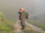 Просто гусеница в траве, путешествует не спеша, тщательно выбирая маршрут:)