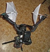 Не знаю, купили или нет, но здесь хороший совет прочел: монопод упирается в ремень. Я монопод купил, но снимаю без вспышки, со штатива, поэтому монопод валяется. Но к нему даже такая штука шла, чтоб упирать в ремень (буквой П). Дома попробовал, показалось очень удобно и мобильно.