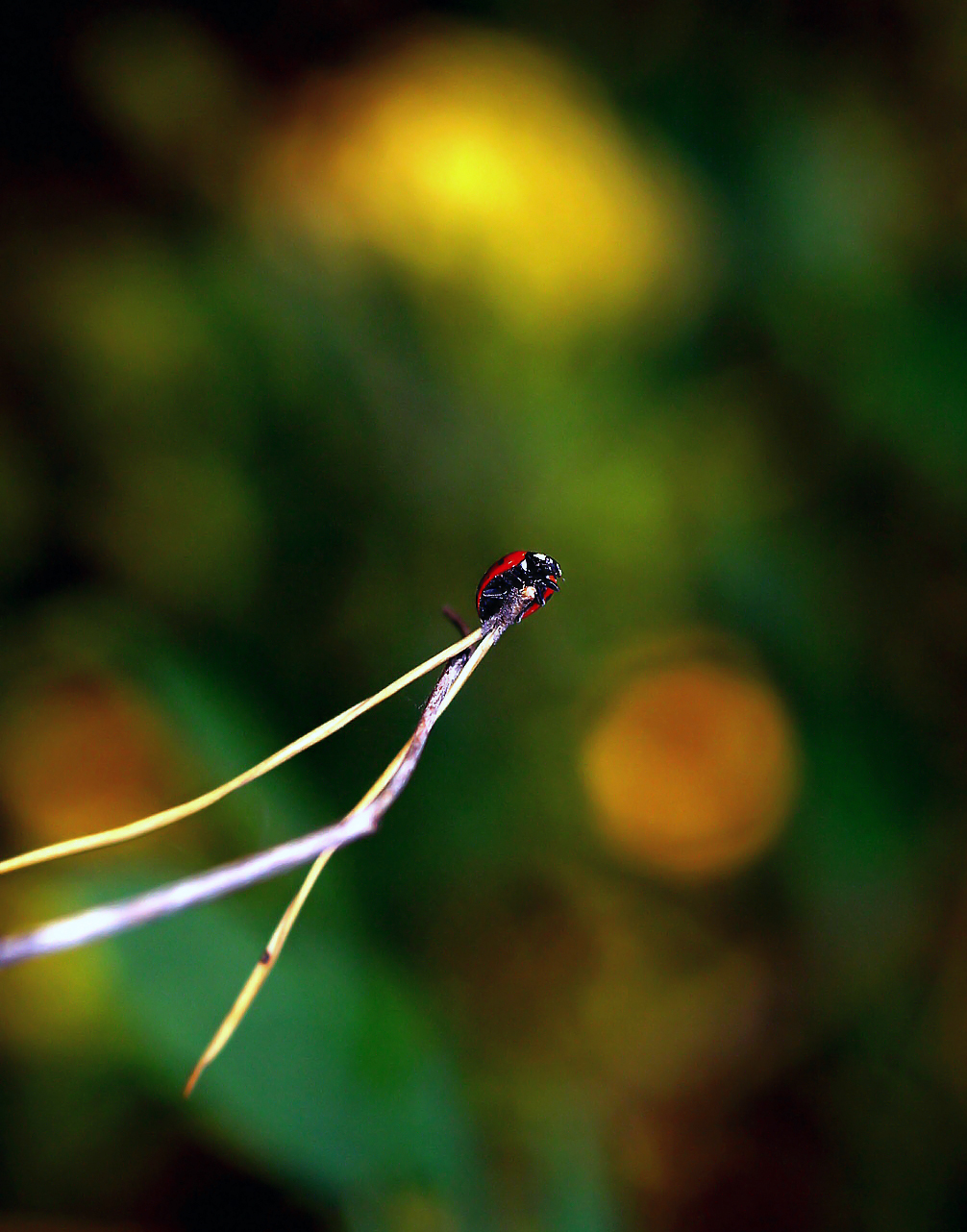 Второй вариант проигрывает в сюжете. То что первый кадр сделан без вспышки - хорошо. Но Вы уж слишком задрали ISO из за этого пошли шумы. А нельзя было подобраться к ней со штативом и использовать паузу между порывами ветра для съемки с большой выдержкой? Ветер конечно бесит, но я научился выбирать для кадра моменты затишья. Даже при сильном ветре бывают паузы между порывами 5-10 секунд.