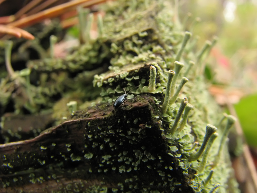 Ракурс неудачный - жучок отвернулся от нас и уперт "лицом" в столбик кладонии