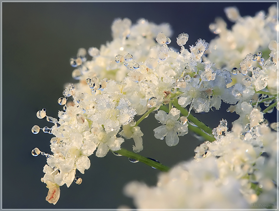 Зима неумолимо приближается и дыхание ее уже чувствуется. Ночь отступает при появлении осеннего солнца. Ночной иней, выпавший на травинках и невесть зачем появившихся в это время редких цветочках, начинает таять. Тепла уже нехватает и росинки лежат прижавшись к льдинкам.