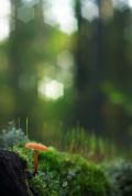 Сходил вчера в лес и на заросшем мхом стволе берёзы нашел эти малюсенькие грибочки.