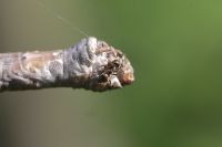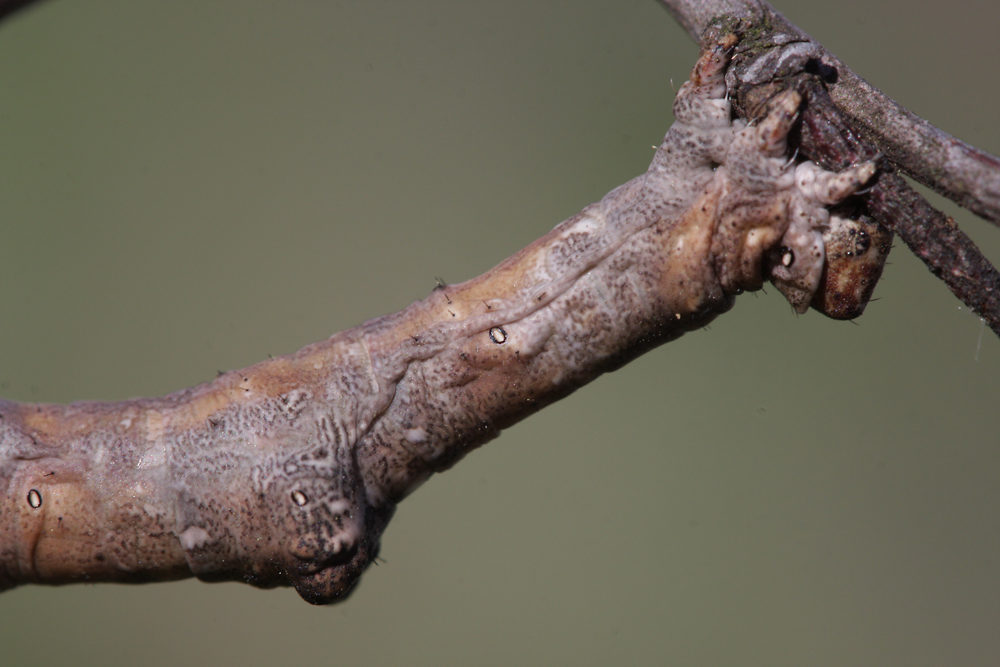 Гусеница пяденицы на терне.Засыпая,для страховки использует паутинку,не реагируя во время сна даже на бегающего муравья.