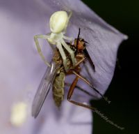 Долгоносик стал свидетелем удачной охоты мезумены(цветочного паука).