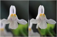 На улице уже зима, все макрообъекты спят под одеялом из пушистого белого снега. А в офисе из-под комнатного растения в кашпо пророс какой-то незаметны сорнячок. Прошло совсем немного времени, и вот уже он зацвел. У сорнячка образовались три маленьких цветочка, похожих на цветок льнянки и один в виде трубочки с лепесточками. Длина цветков всего 11 мм, но какие они симпатичные!