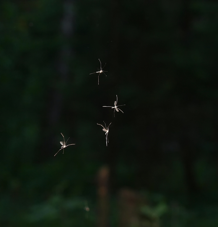 Это снятая с рук большая толпа типа облака кровососущих насекомых, вроде комаров. Их было несколько сотен как минимум, дикое броуновское движение не позволяло сделать что-либо вразумительное, раз десять щелкнул ради интереса