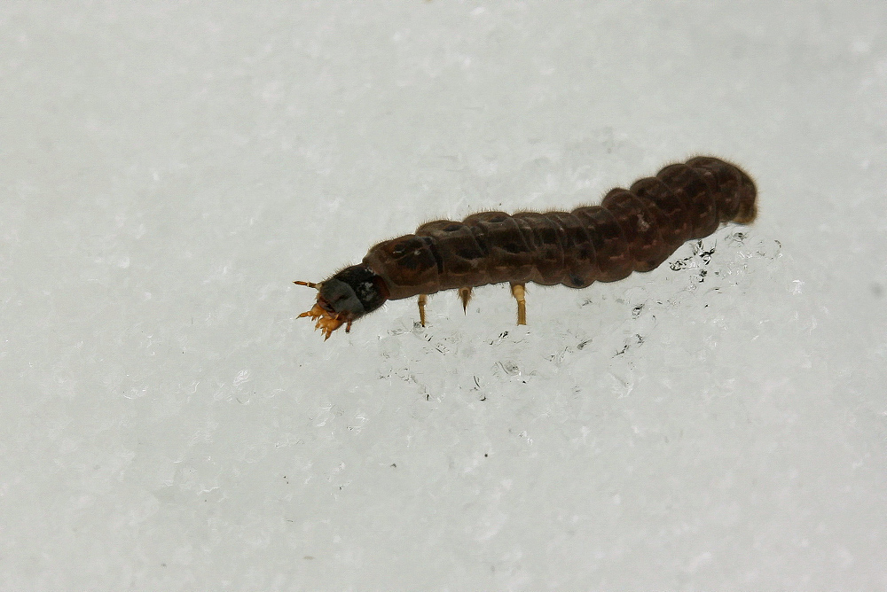 Личинка жука (последние фото) - это, похоже, кто-то из сем. мягкотелок (Cantharidae), они тоже очень рано начинают выползать (в т.ч. на снег).