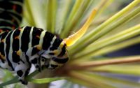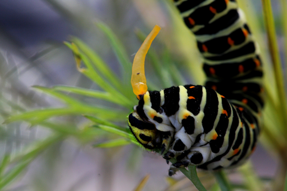 Способ защиты у гусеницы махаона - выдвинуть вот такие оранжевые пахучие рожки.Но бывает,что они ,как в этом случае, повреждены.