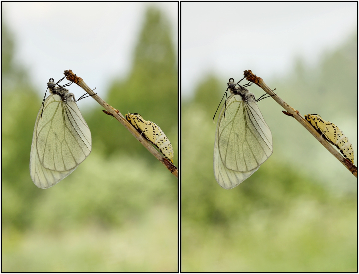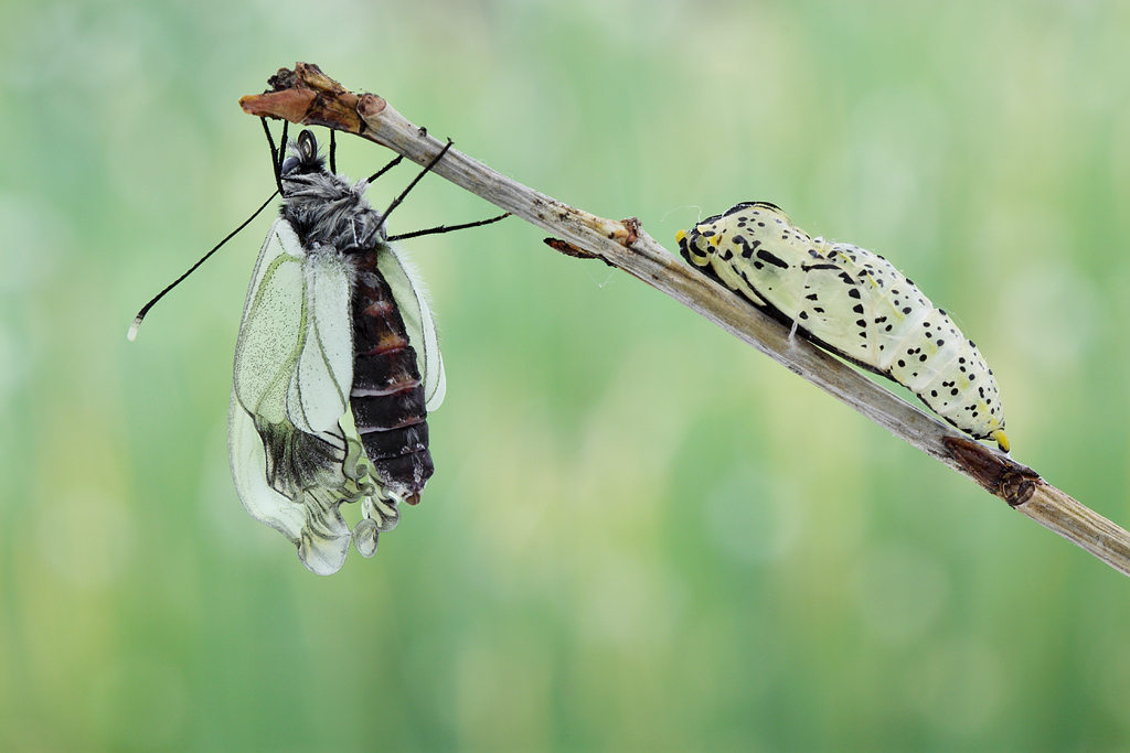 У меня бы не хватило терпения! Она же несколько часов только крылья расправляет. А вот упущенный момент выхода из куколки действительно достоин междометий