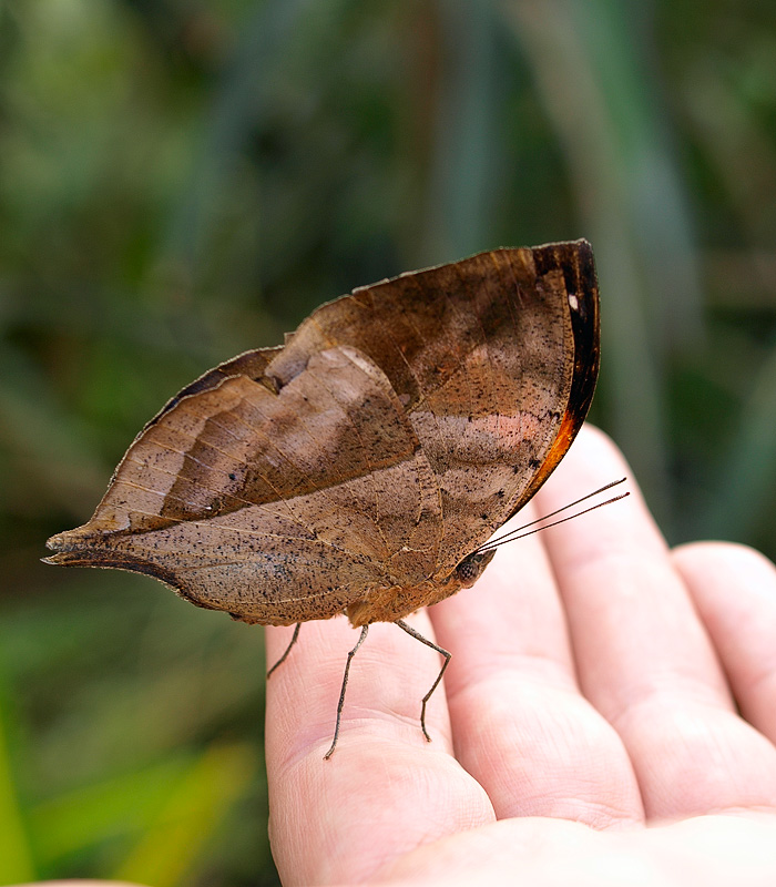 Каллима (Kallima paralekta). Бабочка - сухой листик. Обитает в Малайзии и Тайланде.