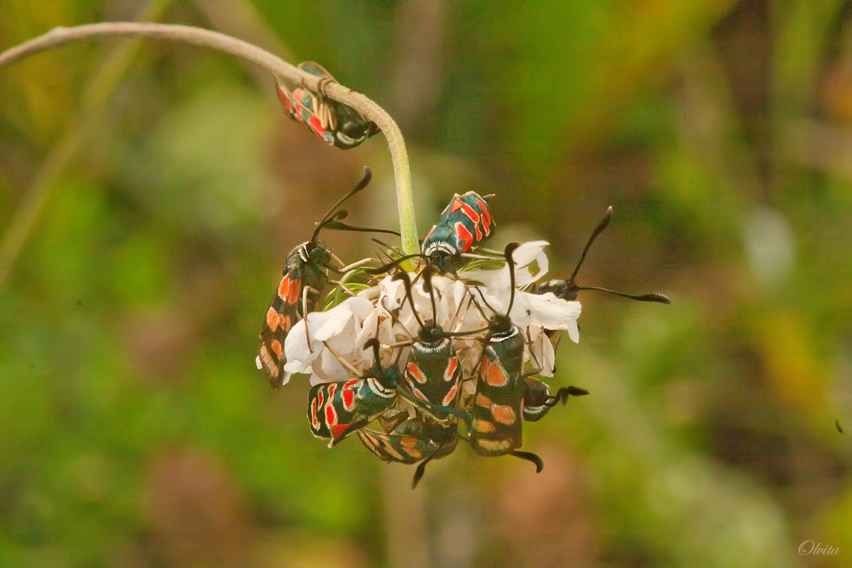 Интересные пестрянка и сразу столько! С такими не встречалась, впрочем, в этом году никаких не видела. И короставник необычный - белый.