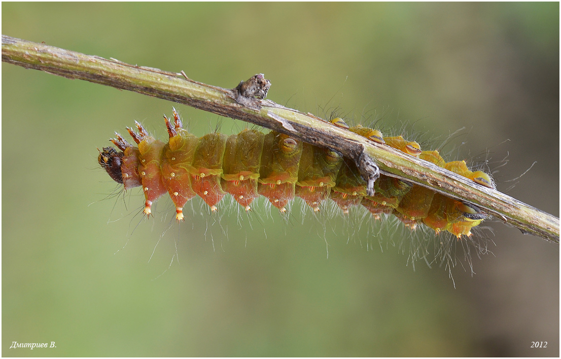 Мощная целеустремленная гусеница ползла на пролом, не смотря на все мои попытки ее приостановить и сфотографировать. Довольно крупная, и тело, как будто из толстой кожи. Мне кажется, что кто-то уже из сатурний... Помогите определить.