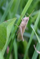 На фото № 14 изображена кобылка бурая (Chorthyppus appricarius L. ), на фото № 15 - обязательно крылатый самец зеленчука непарного, а на фото № 16 - самка скачка короткокрылого с укороченными крыльями и коротким, почти прямым, яйцекладом.