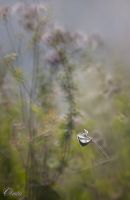 В пятницу вечером было ветрено, сюжетец попался у самой тропинки недалеко от дома.. Бабочка неестественно так флажком болталась на травинке, оказалось её оприходовал маленький разбойник, и устроился ужинать, что было на ветру не очень-то комфортно, как и снимать всё это, впрочем, но я долго и честно старалась