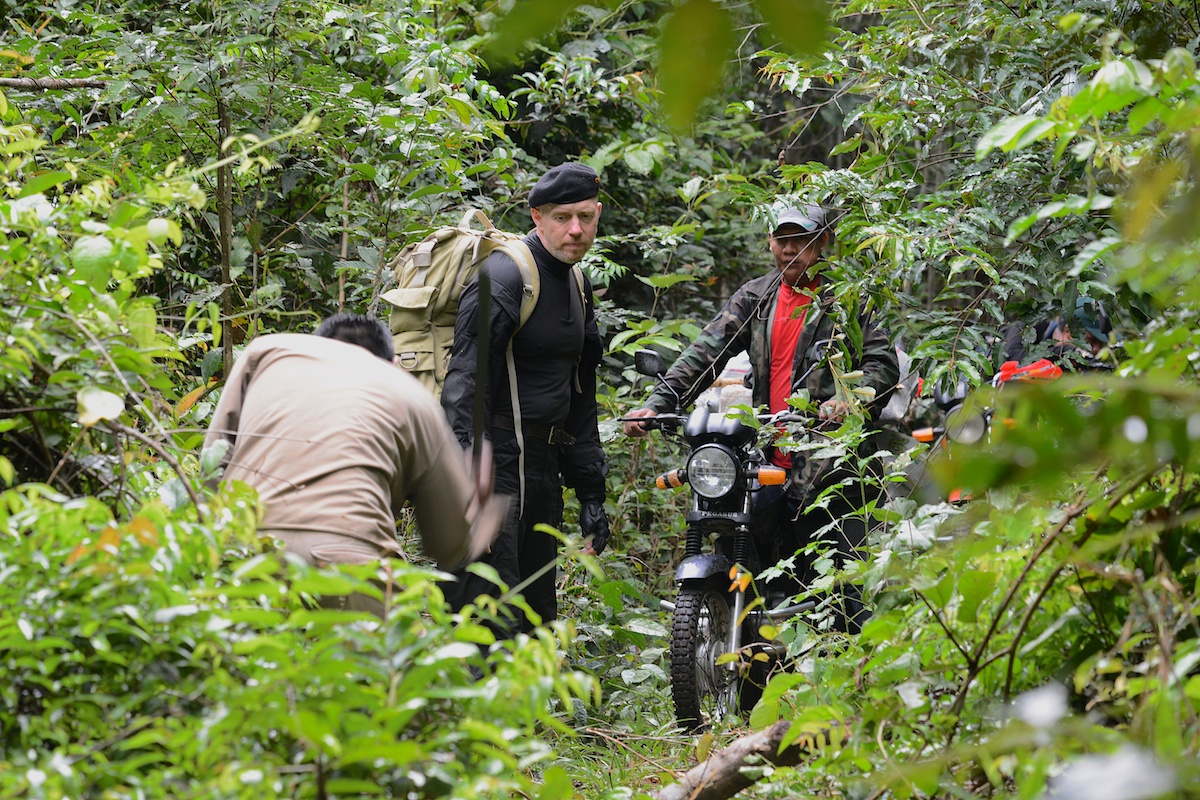 Дорога от Флориды до Los Fierros протяженностью 35 км была преодолена нашим "караваном" из 6 мотоциклов за 12 часов, помимо ручьев, основным препятствием на нашем пути были поваленные деревья, прорубаться через которые приходилось при помощи мачете. Именно этот момент и запечетлен на снимке.