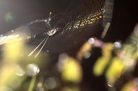А какие там земляничные полянки!... Этот нарядный паучок устроился как раз в таком живописном местечке, и радостно блестел паутинкой в утренних лучах - невозможно пройти мимо