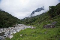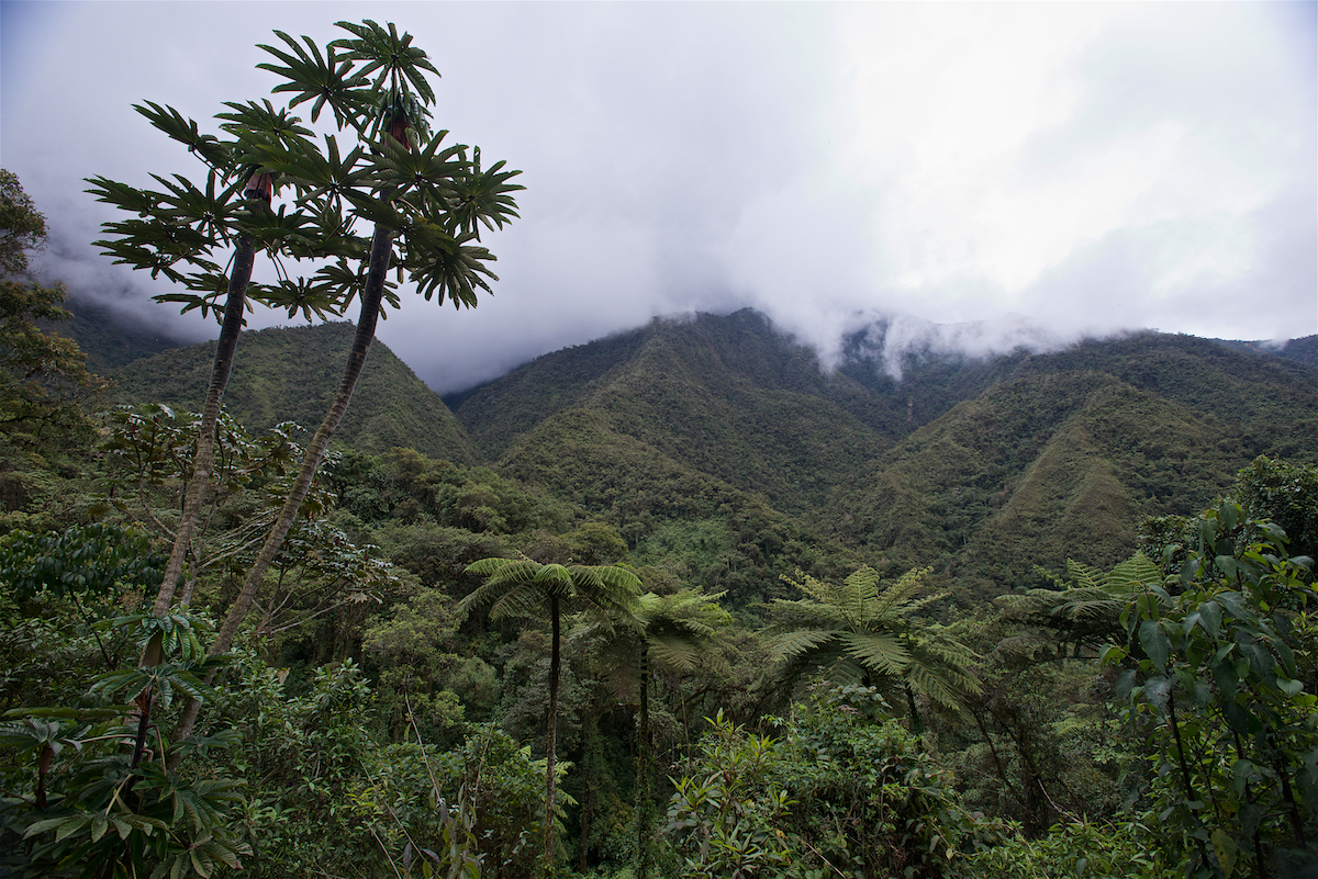 Мы снова в пути. Горная дорога ведет нашу машину все выше и выше , там, где облака, цепляясь за острые гребни хребтов, скатываются вниз по лесистым склонам, оседая на лицах, одежде и стеклах оптики мелкой водяной пылью. Встречи с горами каждый раз ждешь с каким то особым трепетом. Там внизу, на равнине, дождевой лес бывает очень похож на своего собрата из другого тропического региона, а вот горы всегда разные, даже на одной и той же высоте. Наша цель - маленькая горная деревушка Калабаза, расположенная на высоте 2200 метров над у. м. прямо над Володиным заповедником. Дорога петляет вдоль берега горной реки, которая с шумом несется по правому борту в глубоком ущелье, с лева же почти отвесная стена, плотно поросшая всякой экзотической растительностью. Выделяются, конечно, гигантские папоротники, странные деревья с совершенно голым стволом, утолщающимся кверху, и увенчанным пучками крупных листьев. Много деревьев полностью укутанных моховой "шубой" и украшенных пурпурными розетками бромелий. Более мелкие формы из окна машины не заметить, но Володя говорит, показывая на один из горных склонов, что в апреле он весь усыпан цветущими башмачками. Эх жаль, что на дворе уже декабрь, опять с орхидеями не повезло. Постепенно становится ощутимо прохладнее и вершины окрестных гор растворяются в тумане, но до цели уже не далеко, вот и табличка с указателем CALABAZA. В деревне около 10 домов, но нас размещают в недостроенном отеле. На первом этаже там 7 кроватей и стол, вода и прочие удобства на улице, второй этаж еще строится, даже опалубку пока не сняли. По местным традициям, нормальной лестницы на этот второй этаж нет, есть только приставная. Недалеко от нашего отеля маленькая, недавно построенная школа, но она закрыта и дети в школу не ходят. Вообще не понятно чем там живут люди, туристический бизнес вряд ли приживется, даже когда достроят отель. Пока там бывают редкие группы энтомологов, но с них мало чего возьмешь :-) Правда у Андрея Васильевича все же местные малолетние воришки украли два фонарика, пока я ходил на разведку на счет обеда. Но природа, конечно, очень красивая, наконец работа для ширика появилась. Но и для макро здесь были свои цели. Всем хороша была наша поездка в Ашанинко, таких шикарных жуков удалось снять, а уж про бабочек и говорить не чего. Но не было там ни одного жука-рогача, поэтому оставалась надежда только на Калабазу, опять же "разведданные", еще в Москве полученные, на это указывали. В первый же вечер удача улыбнулась, на экран прилетела самка жука-рогача, от наших "оленей" эти жуки отличались металлическим блеском надкрылий, но размер у них был средний. Утром отправился вдоль горной реки, но "рекой бабочек" она явно становиться не желала. Возможно виной была пасмурная погода с временами моросящим дождиком? Зато удалось найти несколько экземпляров цветущих орхидей и множество бромелий. Однако у Андрея с прямокрылыми была просто беда, для них это слишком высоко и холодно. Предвидя подобное, он заранее попросил забрать нас отсюда как можно раньше. В последний вечер нашего пребывания в Калабазе, мы разместили экран, сделанный из подручных строительных материалов прямо на крыше недостроенного отеле, т.к. накануне ночью местные увели наш штатный экран, опрометчиво оставленные на поляне. Из отеля запитали две лампы, вместо одной, работавшей от
