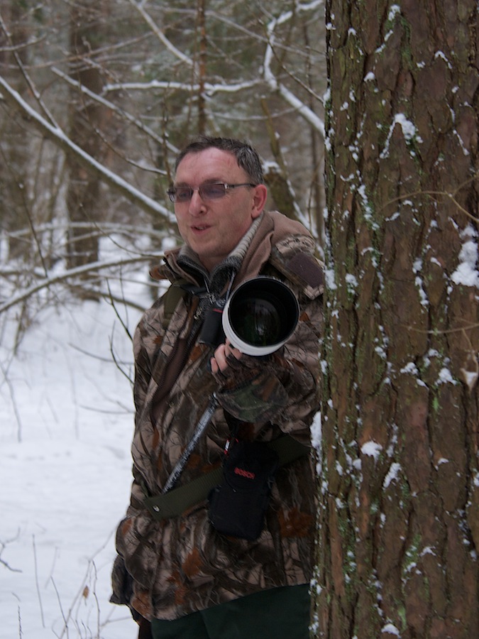 1 января 2013 года, какая то часть Макроклуба еще спит, устав от встречи наступившего года и копит силы для грядущих макрошедевров, но небольшая группа, собравшаяся в ЛОО уже выдвинулась в лес в поисках "рогачей" совсем другого масштаба, мы пошли "на лося". Владимир Аникеев, экипированный как персонаж из фильма "Хищник" сразу ушел в отрыв и мы потеряли его из вида, но Юра Соколков, вооруженный чуть более легким фотооружием уверенно повел нас на лося. Едва углубившись в лес след был взят, но повел он нас назад в деревню, откуда мы и пришли. Но Юра не унывал, во всем его облике чувствовалось, что лось где то рядом, и "взять" его это только вопрос времени. Скептически окинув взглядом наше легкое снаряжение, Юра в одиночку проходил по следу самые занесенные снегом места, тогда как мы срезали углы двигаясь по дорожкам. Следы уходили в деревню, поворачивали назад к лесу, снова возвращались в деревню, да простят меня гуманитарии, но лоси явно выписывали фигуры Лиссажу. Я уже начал терять терпение, Наташа с Юрой пытались прийти к консенсусу по поводу давности обнаруженных очередных следов, но тут раздался "звонок друга", Владимир Аникеев сообщал, что визуальный контакт с лосями установлен, это была лосиха с лосенком (хотя наши следопыты сей факт уже установили) и он ведет преследование. Вот это да, это не следы распутывать, подумал я, здесь нужна скорость и еще раз скорость и лось будет на расстоянии "фотовыстрела". Какая это была наивность. Сначала мы двигались довольно быстро и прямолинейно, но постепенно движение все более стало напоминать броуновское, Юра периодически включал систему "астрокоррекции", связываясь по телефону с Володей, но, видимо, "карты звездного неба" у них были разные, либо лоси так путали следы и не давали взять себя "в клещи". Наконец из-за стволов деревьев возник силуэт Володи Аникеева, лосей с ним не было:-) Оказалось, издалека завидев мою красную, шуршащую куртку лоси быстро покину площадь предполагаемого контакта. Володя снимки конечно сделать успел, но мы то лосей даже не повидали! Но ничего, растянувшись цепью, мы стали прочесывать наиболее лосеперспективные направления, и , о чудо, через какое то время мы их увидели снова, животные были прекрасны, как грациозно перемещались они по рыхлому снегу, как легко выходили из окружения, которое мы безуспешно пытались создать. В какой то момент, посчитав, что все проклятие в моей красной куртке, я сбросил ее и попытался приблизится к животным. Но все было тщетно, лоси не позволяли приблизится к себе такому количеству людей, шанс мог быть только у одиночного охотника. Ну что ж, первый раз увидеть лося в дикой природе - тоже неплохо. Фотографии же лосей есть у более удачливых участников экспедиции. Я же хочу показать фотоохотников, в их естественной среде обитания :-)
