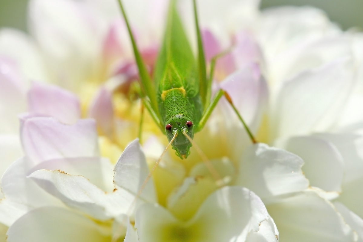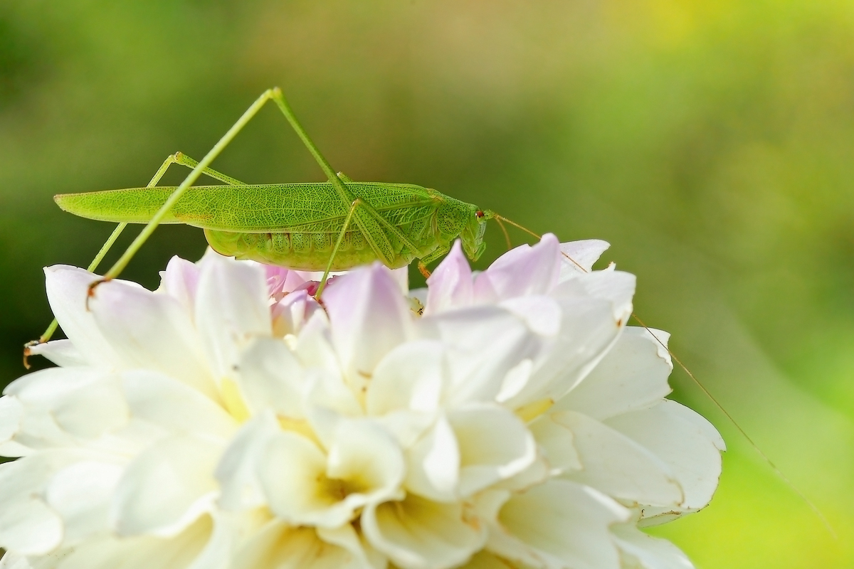 Если не ошибаюсь, то позировал пластинокрыл обыкновенный - Phaneroptera falcata (Poda, 1761), сем. Tettigoniidae.