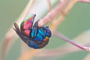 Длинноусая пчелка выбрала самую тонкую веточку для ночлега, которая прогнулась под ее весом и раскачивалась на ветру.