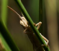 . Красиво кузнечик с сумраком зарослей контрастирует.