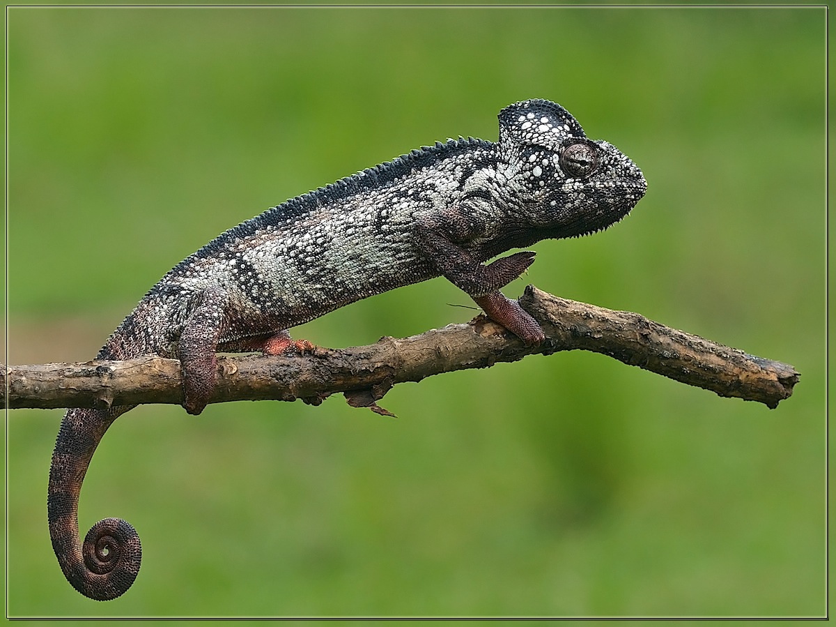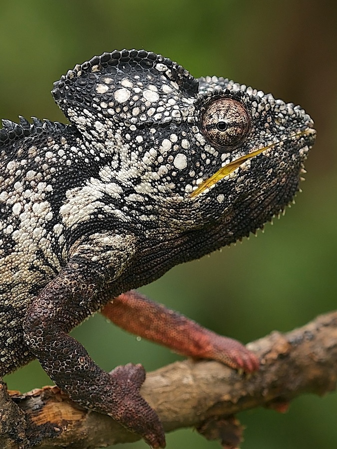 Считается, что максимальная длина от кончика носа до кончика хвоста у этих хамелеонов составляет 50 - 60 см. Нам конечно такие гиганты не встретились, здесь на снимках самый крупный был около 25 - 30 см.