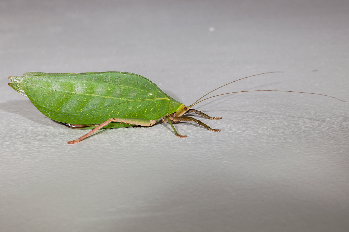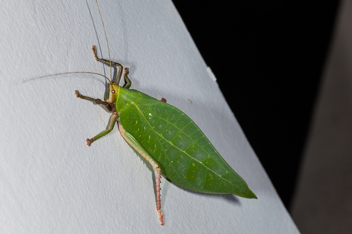 Все больше укрепляюсь в мнении, что у Вас на снимках Onomarchus sp., семейство Tettigoniidae, подсемейство Phylloporinae.