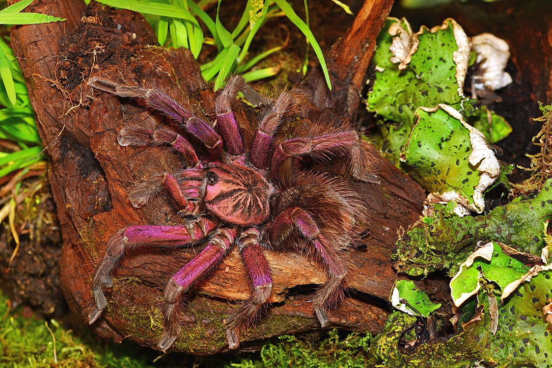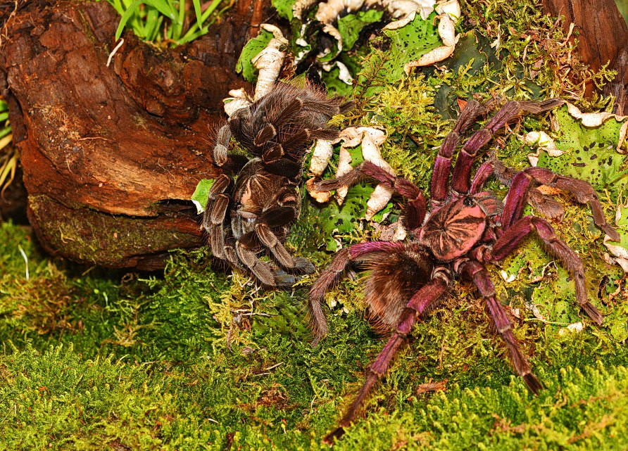 Спасибо, нет ничего не подрабатывал -у этих пауков самцы очень красивые с таким необыкновенным фиолетовым отливом, а вот самки более скромные - цвет ближе к черному. При чем этот цвет у самца меняется в зависимости от освещения.