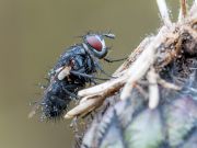 Паук-рысь Oxyopes ramosus (Oxyopidae). О его размере можно судить по добыче (вроде бы сеноед какой-то).