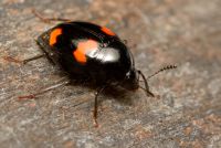 Мелкий жук чёрного цвета с блестящим оттенком. Размер до 5,5 мм. Надкрылья имеют по 2 поперечных красных пятна. Усики с пятичленной булавой. Личинки живут и развиваются в плодовых телах грибов, или в гнилой древесине. Предпочитает лиственные породы.