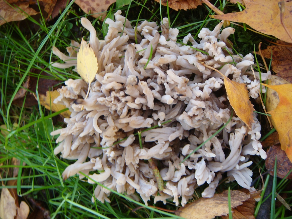 Выпуск пятый. "Клавулина". Гриб напоминает какие-то макаронные изделия. Нашла на небольшой площади несколько штук, различающихся размером (количеством «вермишелин") и немного окраской. Через неделю нашла еще один рядом с ранее найденным.