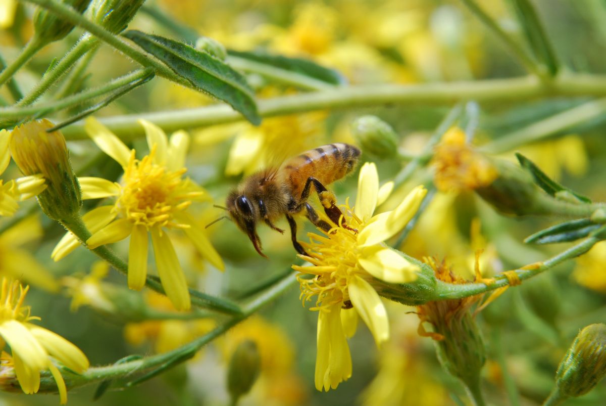 А у нас самый разгар осеннего сбора.Пчел множество на расцвевших осенних травянистых.