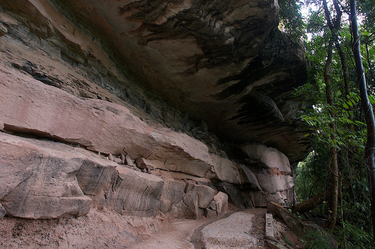 Национальный парк Pha Taem расположен на самом востоке Тайланда у границы с Лаосом, по границе протекает река Меконг. В парке мы оказались после завершения лаосской части маршрута по рекомендации мистера Ту. Парк оказался очень интересным и представлял из себя экосистему сухого диптерокарпового леса, раскинувшегося вдоль крутого правого берега Мегонга на обнаженных породах магматического происхождения, видимо базальтах, практически полностью лишенных слоя почвы. Кроме представителей живой природы, традиционных для макрофотографа, в парке были: грибовидные скалы, водопады, по вечерам должны были давать Закат, для этого даже специальная площадка оборудована была, но самым значительным (по крайней мере согласно тайским источникам) центром притяжения для туристов должен был являться величественный обрыв, испещренный наскальными изображениями доисторической эпохи - Петроглифами. Согласно официальной информации в парке насчитывается около 300 петроглифов, расположенных вдоль нижней границы обрыва на протяжении около 180 м. Возраст петроглифов оценивается в 3000 лет. Самое интересное, что открыты были эти изображения сравнительно недавно, только в 1981 году, нам с Наташей на это потребовалось 2 дня :-) Ниже будут представлены некоторые из наиболее интересных изображений и что на них изображено, каждый сможет решить сам. Официальная версия гласит, что это предметы и объекты окружавшие людей той эпохи (рыбы, слоны и т.д.). Но вот нам с Наташей так не показалось, после контакта с изображениями, Наташа сказала, что это визит инопланетян, там и пипелапс присутствует на котором они прилетели, и летающие тарелки, похожие на рыб, а слон, это не слон, а динозавр. Там даже кто то по мобильному телефону говорил :-) Я полагаю, что эта гипотеза ничем не уступает официальной, хотя, конечно могут быть и другие версии. Вот например: первобытные художники активно применяли для стимулирования творческого процесса некие галюциногенные грибы , памятники которым здесь в изобилии присутствуют в самых различных местах, после этого объективная реальность подвергалась значительной трансформации, которая и дошла до наших времен в виде столь необычных петроглифов. Как бы то ни было - истина где то рядом :-)
