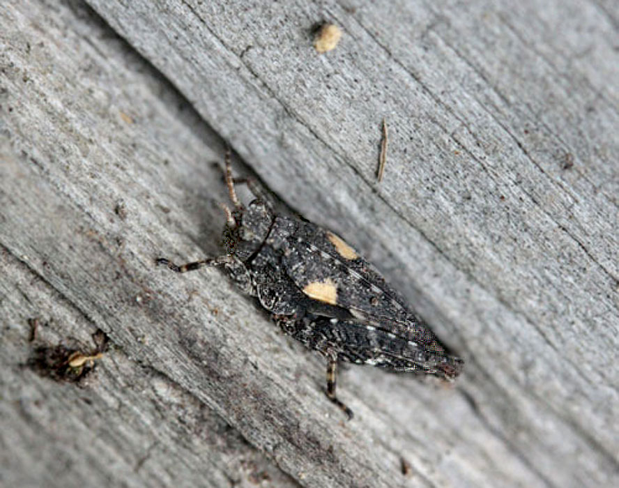 Еще совсем недавно их относили к семейству саранчовых (Acrididae). Теперь семейство стало надсемейством, а прыгунчики входят в самостоятельное семейство Tetrigidae, отр. Прямокрылые (ORTHOPTERA). И не случилось бы этого еще лет 240 с момента идентификации его К. Линнеем........если бы не наш уважаемый коллега Александр Бенедиктов. Именно им в 1998 г. (см. в интернете о тетриксах) обнаружено, что эти крохи могут общаться между собой, хотя у них и нет специальных стридуляционных (звукоиздающих) и тимпанальных (звукоулавливающих) органов, как у прочих прямокрылых. Оказывается, они (и самцы, и самки) стучат средними ножками по субстрату и создают его вибрации. А воспринимаются они - эти вибрации, по-видимому, подколенными органами. Причем, так тихо вибрируют, что прыгунчиков все эти два с лишним столетия считали просто глухонемыми. Обнаружено это явление в биоаккустической лаборатории МГУ сначала на прыгунчике узком (Tetrix sabulata L.), что Вы видите на снимке. Позднее вибрации были обнаружены еще у 7 видов из разных стран и одного бескрылого сверчка. Может быть, действительно, тетриксы узкие имеют различную покровительственную окраску (см. фото А. Бенедиктова в галерее), может быть, мой серенький тетрикс (см. в альбоме) самка, а это самец (более яркий),а можкт это вообще разные виды? Определение тетригид очень сложно, что отмечается специалистами, но именно, "копию" представленного здесь снимка я видел на одном из сайтов (кажется,тетрикс из штата Небраска, США)........к сожалению, сайты обладают способностью меняться местами или вообще исчезать (пытался вновь найти прыгунчика из США и "его автора", но пока все напрасно). Обнаружен мною в Косяково и совсем крохотный прыгунчик (половина сантиметра, не более) с двумя желтыми пятнами на надкрыльях, не имеющий ничего общего с тетриксом двупятнистым с черными пятнами (см. фото А. Бенедиктова в галерее). Так что у меня пока сплошные вопросы с определением косяковских тетриксов и, конечно же, я попрошу помощи у нашего уважаемого тетриксоведа Александра Бенедиктова. А фотографии найденных мною тетриксов смотрите ниже.