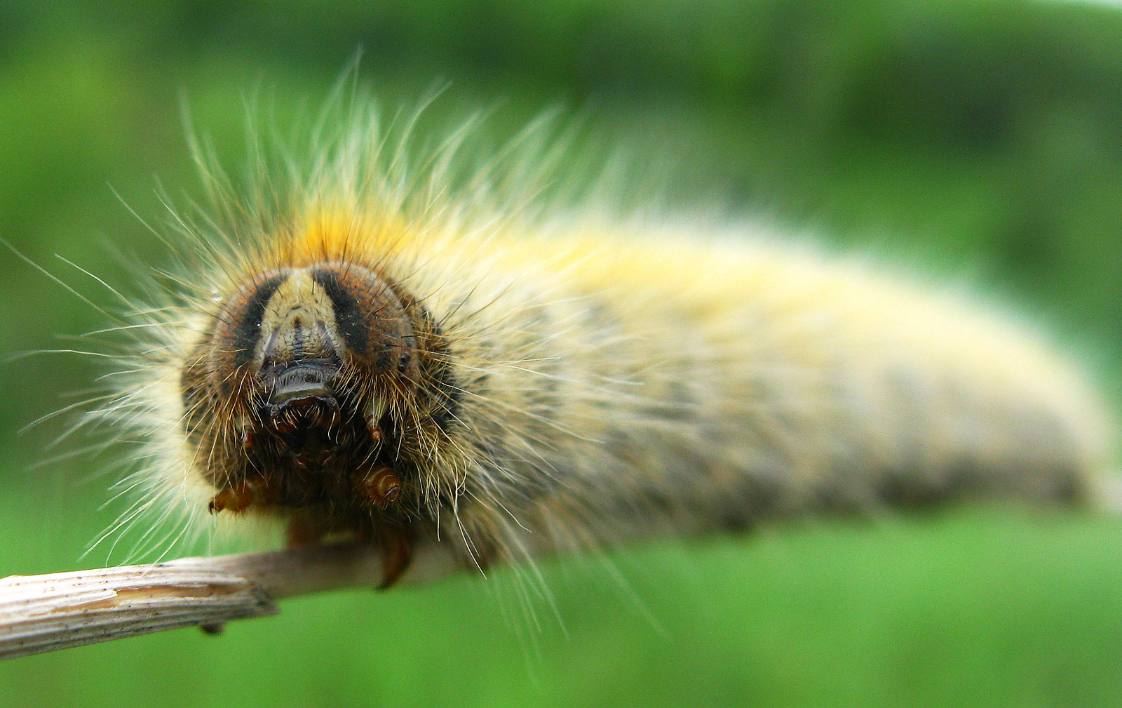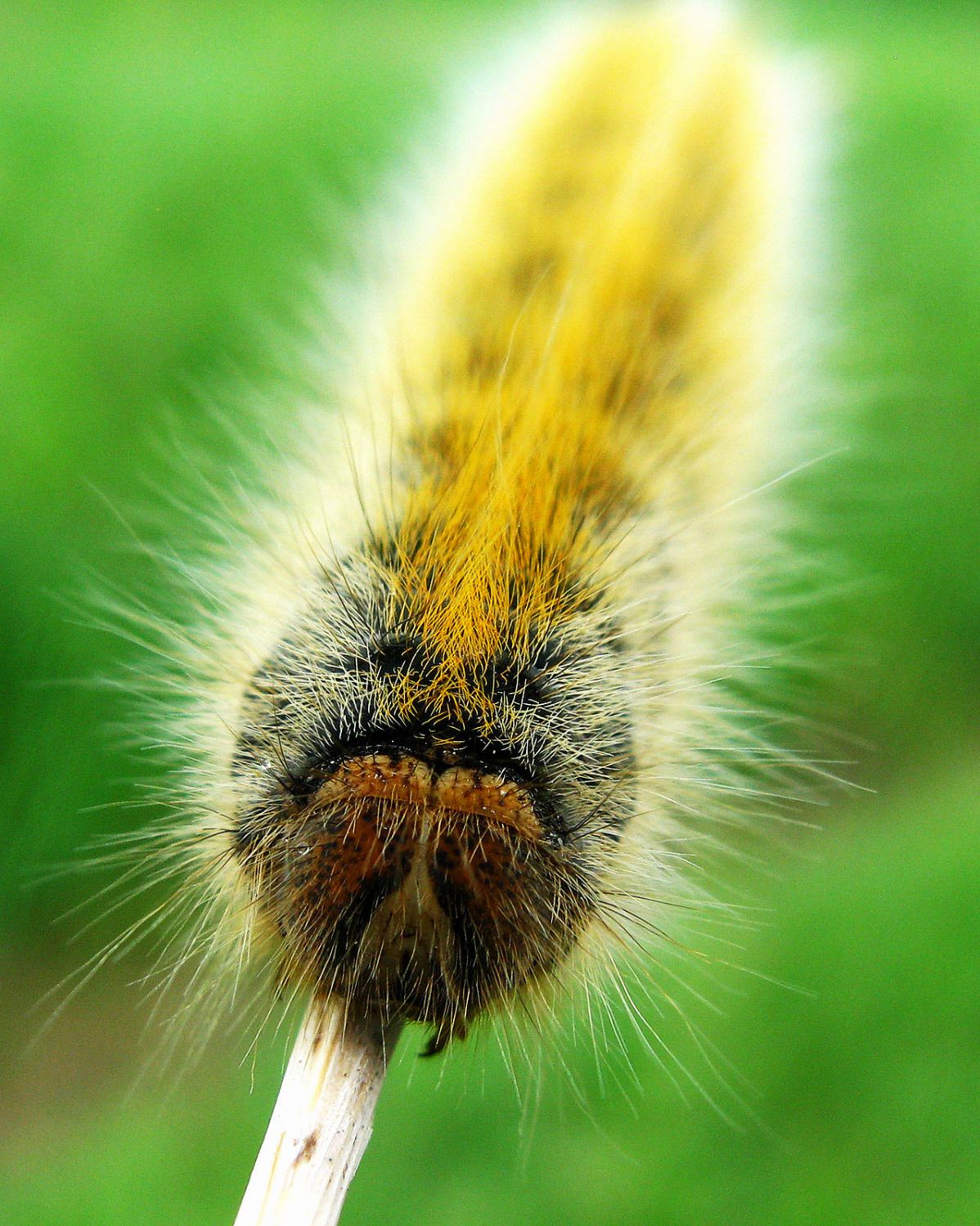 Встретил в балке Непрец лохматых гусениц. В один день сразу три штуки. Подскажите, кто это. По поиску Яндекс нашел похожих - коконопряд клеверный, но не совсем то, кажется.