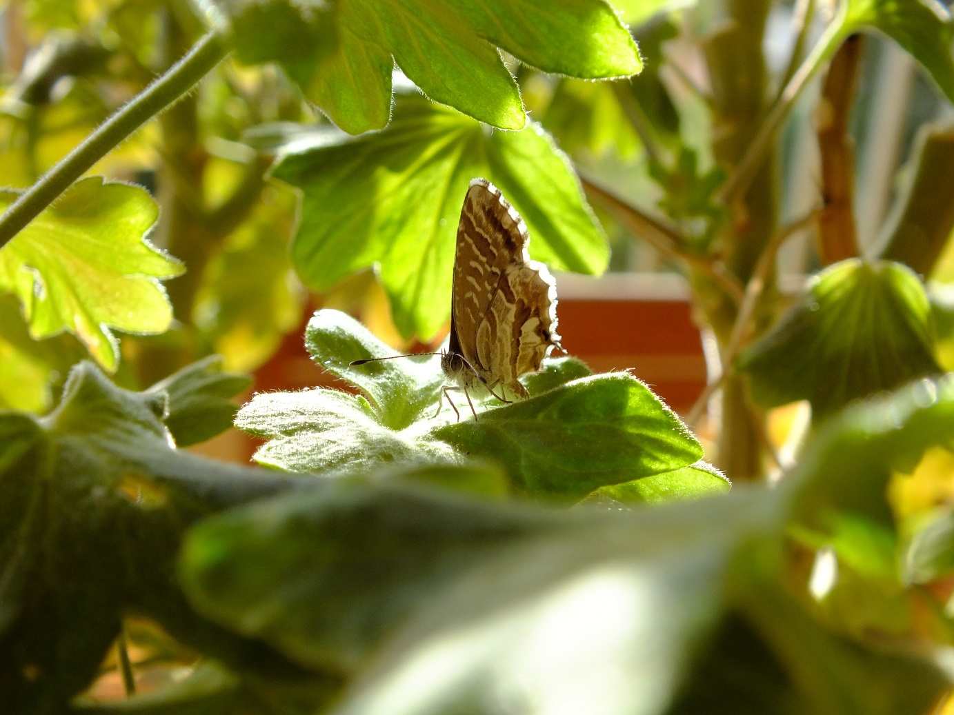 Ну вот, может и не сильно художественно, но мне лично на оригинал приятнее как-то смотреть, в естественной среде, так сказать, видеть бабочку... А про герань... Я как-то случайно на окне, на герани заметил некий силуэт - присмотрелся, а на ней сидит гусеница непарного шелкопряда и уплетает за обе щёки. (Гусеницу случайно с дачи привезли). Это было для меня полной неожиданностью - никогда не видел, чтобы кто-то ел герань... А оказывается есть гурманы, специализирующиеся на ней...