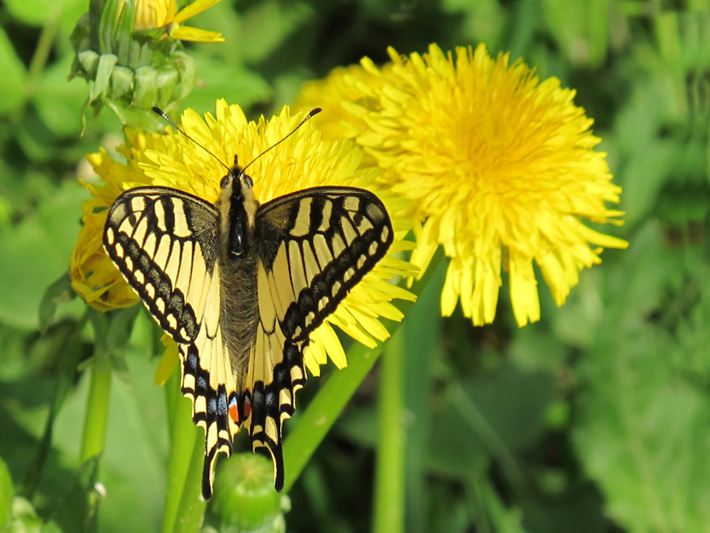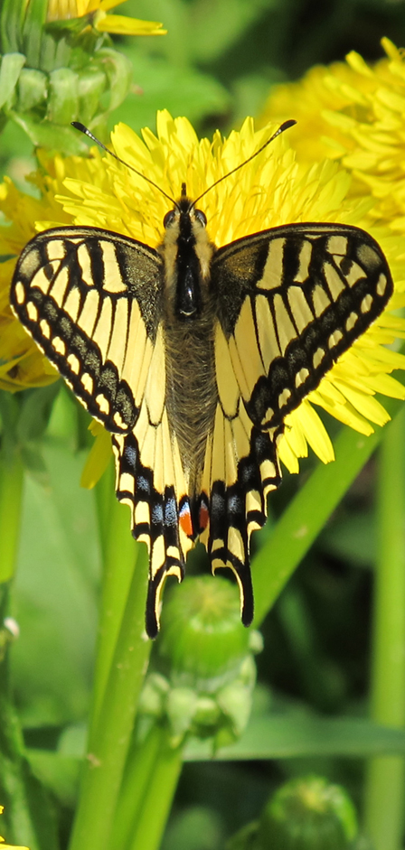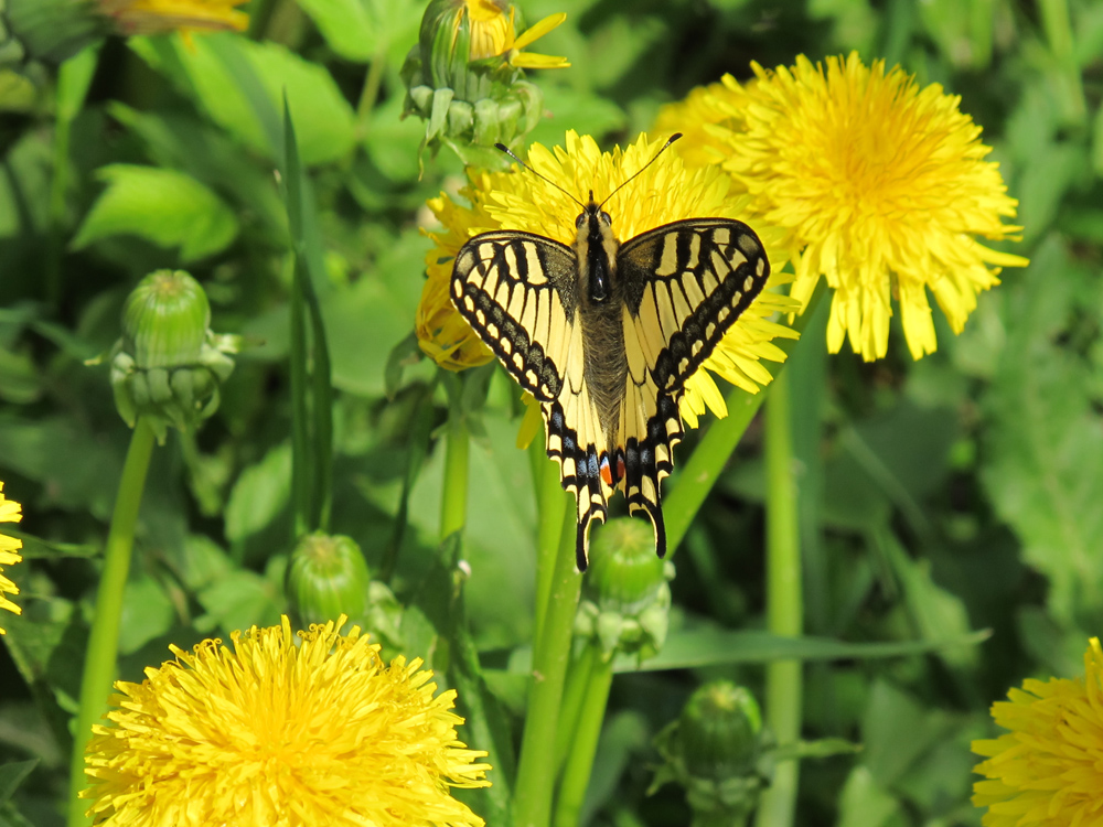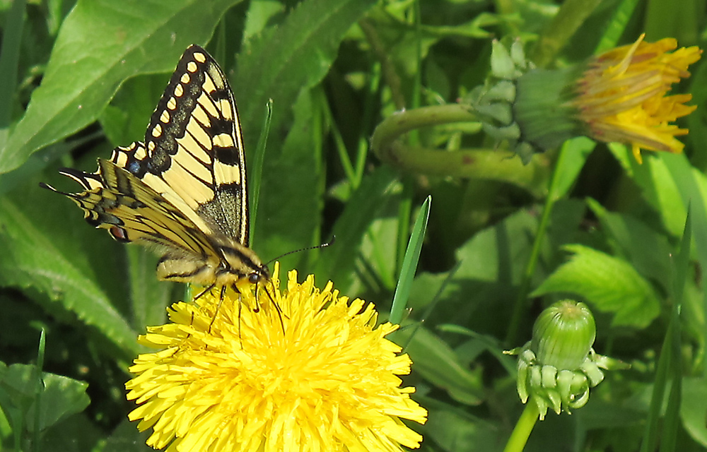 Edwardguz: Я бы кадрировал как-то так: противопоставив "узкого" махаона круглому одуванчику... Ну и правило третей. Кмк, отойдя от чистой демонстрации бабочки, а перейдя к показу и растений, на которых она кормится, именно этот вариант кадрирования лучше.