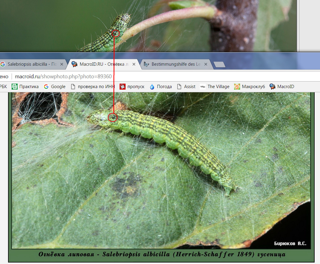 Провидухин Роман:Может быть Salebriopsis albicilla ? Вроде бы и пупырышек в отмеченном месте на фото у обоих есть. Или другая какая огнёвка. http://macroid.ru/showgallery.php?cat=83709 http://insectamo.ru/larva/119-mikrocheshuekrylye/pyralidae/2715-salebriopsis-albicilla