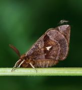 Тёмно-коричневая бабочка с длиной крыла 15-16мм. Снято примерно в 21:00.